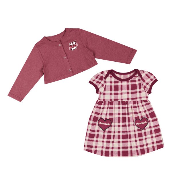 INFANT GIRL'S MARCELINE PLAID DRESS/CARDIGAN SET- MAROON SKU 4001779 BRAND: Colosseum $39.98 Quantity discounts available QuantityPrice (0)No Reviews yet Infant/Toddler Sizes 0-3 Months 3-6 Months 12-18 Months 6-12 Months Size Chart Quantity -+ Add to Cart Details Maroon and white plaid infant dress featuring maroon hearts with “Massachusetts” in them. Comes with maroon long sleeve overshirt with a Power U on th... Details Back DetailsMaroon and white plaid infant dress featuring maroon hearts with “Massachusetts” in them. Comes with maroon long sleeve overshirt with a Power U on the left chest. Ratings & ReviewsNo reviews availableBe the first to Write a Review