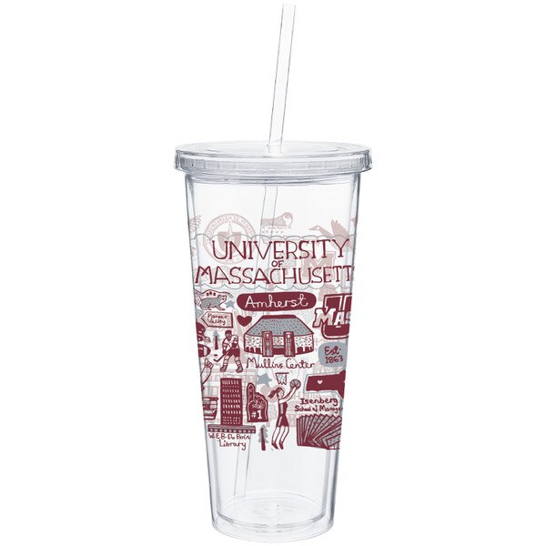 Tumbler featuring prints of UMass landmarks, buildings, and more.