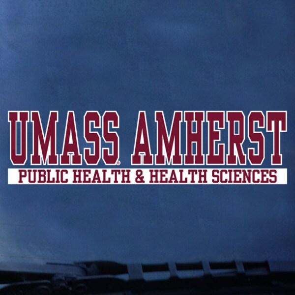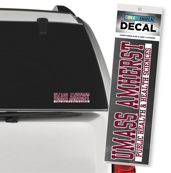 Car decal featuring "UMass Amherst" over "Public Health & Health Sciences".