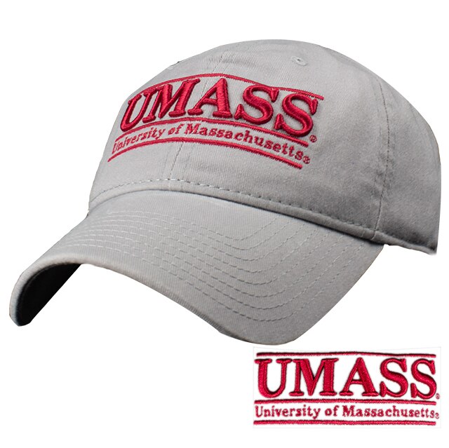 UNIVERSITY OF MASSACHUSETTS BAR DESIGN - GREY SKU 2009103 BRAND: The Game $29.98 Quantity discounts available QuantityPrice (0)No Reviews yet This item is in stock Quantity -+ Add to Cart Details Unisex adjustable bar design cap in grey featuring "UMass" embroidered on the top and "University of Massachusetts" embroidered on the bottom. Details Back DetailsUnisex adjustable bar design cap in grey featuring "UMass" embroidered on the top and "University of Massachusetts" embroidered on the bottom. One size fits most. Material:100% Cotton Care: Hand wash. Dry flat. Ratings & ReviewsNo reviews availableBe the first to Write a Review