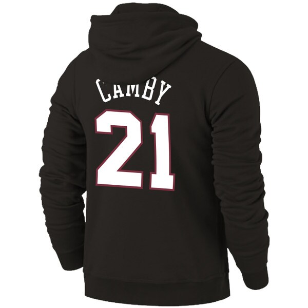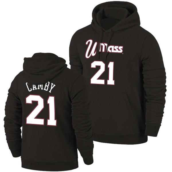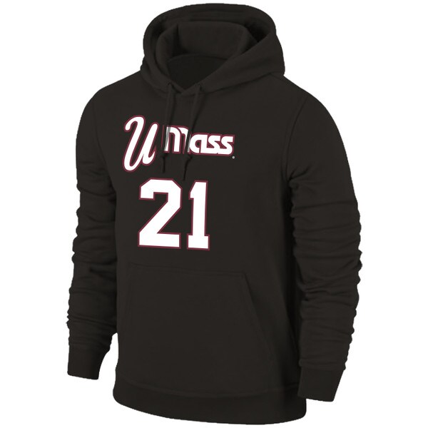 Official vintage Marcus Camby hoodie-jersey in black from his time on the UMass basketball team from 1993-1996. Featuring an era-specific UMass logo and his number #21 on the front, and his name and #21 on the back.