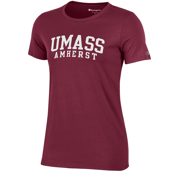 WOMEN'S UNIVERSITY SHORT SLEEVE CREW TEE - MAROON SKU 4000107 - XL BRAND: Champion $29.98 Quantity discounts available QuantityPrice (0)No Reviews yet This item is in stock Standard Sizes X-Large Size Chart Quantity -+ Add to Cart C6000-588 Details Women's short-sleeve tee in maroon featuring "UMass Amherst" printed on front.Material:52% Cotton48% PolyesterCareDetails Back DetailsWomen's short-sleeve tee in maroon featuring "UMass Amherst" printed on front.Material:52% Cotton48% PolyesterCare: Machine wash cold with like color. Use only non-chlorine bleach when needed. Tumble dry low. Low iron if needed. Ratings & ReviewsNo reviews availableBe the first to Write a Review